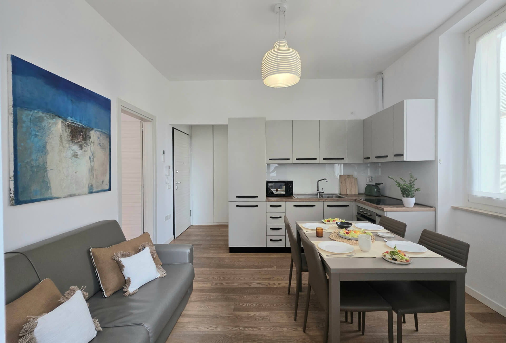 L’Ancora si trova al primo piano di Palazzo Galileo ed è un comodo mini appartamento di 50mq composto da ingresso, soggiorno cucina, camera e bagno.
